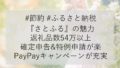 ※下記NNコミュニケーションズ(代理店)の場合はキャッシュバックの方法が簡便になっています。